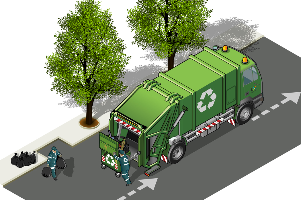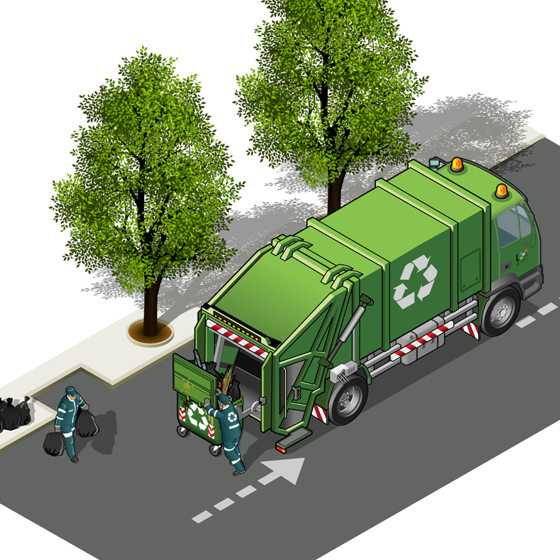 Ilustração alusiva à recolha de lixo na rua por um camião da Câmara Municipal de Lisboa.