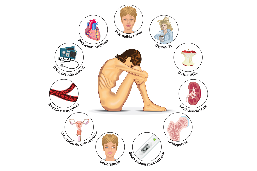 Criação de infografia sobre a anorexia, abordando as várias consequências desta doença.