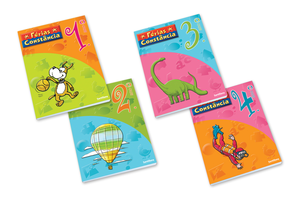 Design de capas de coleções de livros de exercícios (Férias Constância), produzidas para a editora Santillana.