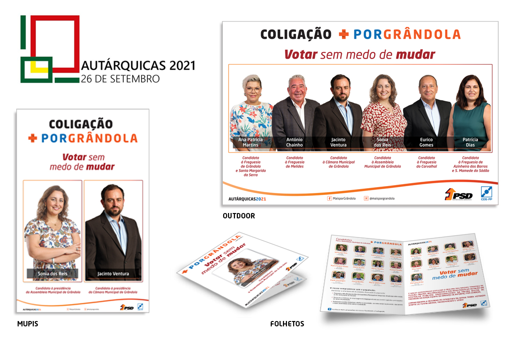 Criação e produção da imagem da campanha autárquica do PSD de Grândola, eleições autárquicas de 2021.