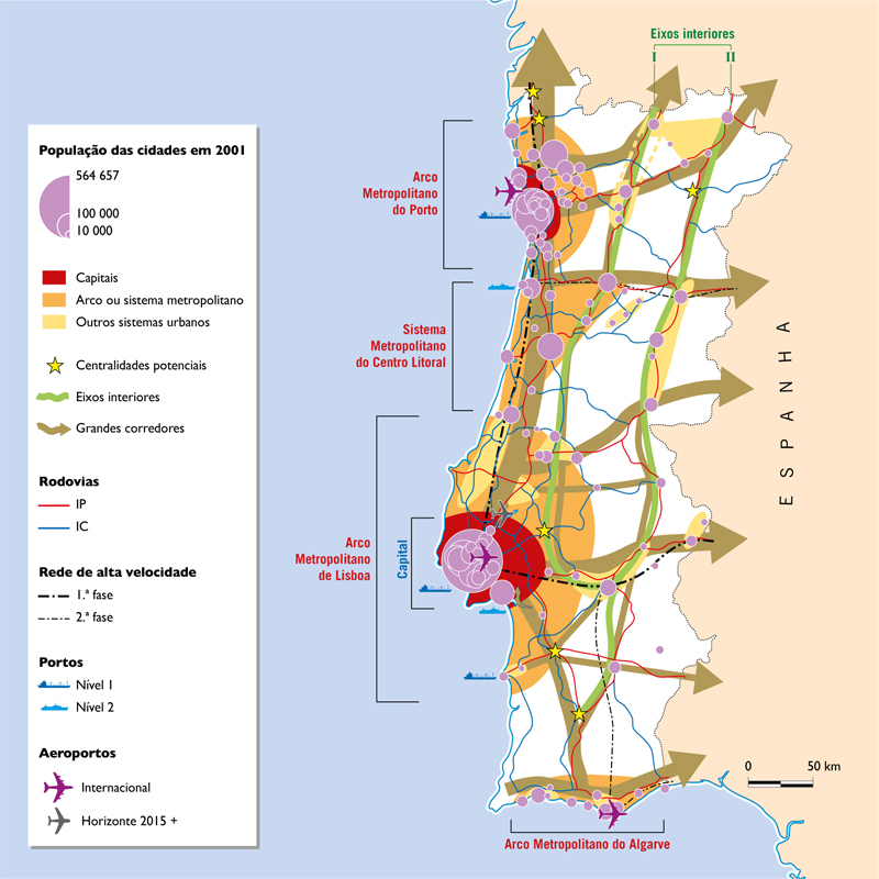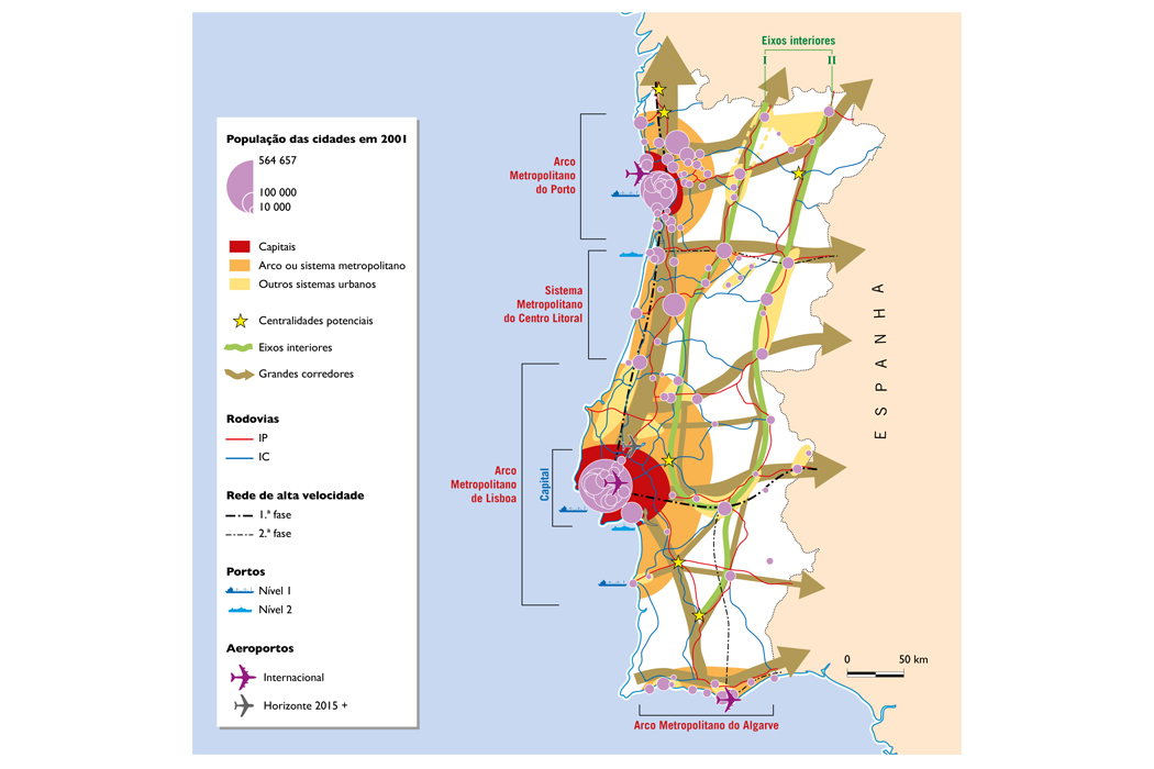 Mapa ilustrativo do sistema urbano integrado, com acessibilidades e povoamento humano.